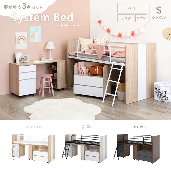 システムベッド[ロフトベッド&デスク&ラック 3点セット]ロータイプ シングルベッド ロータイプ シングルベッド ランドセルラック 学習机 勉強机 子供部屋 子供 新生活 一人暮らし おしゃれ 北欧 シンプル ナチュラル