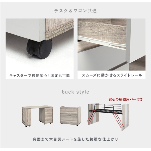 デスクはキャスターも付いて移動もラク!引き出しも使いやすいスライドレール付き。