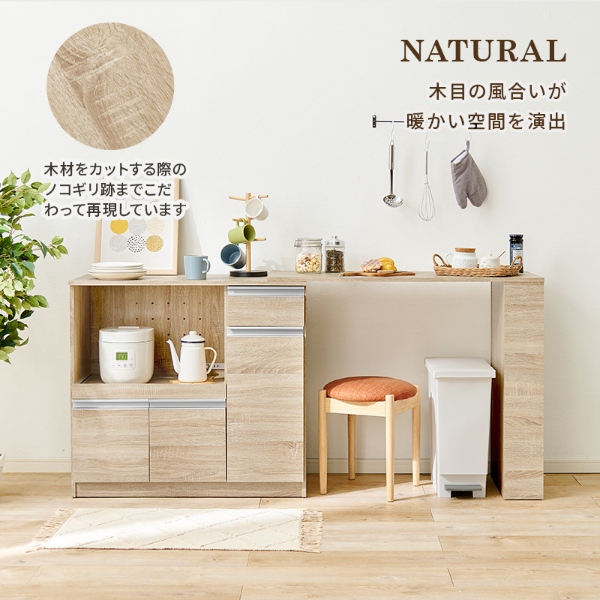 本品は、キッチンカウンターに拡張テーブルが付いたお得なセットで、1人暮らしの方からご家族まで、幅広い世代に最適なアイテムです。