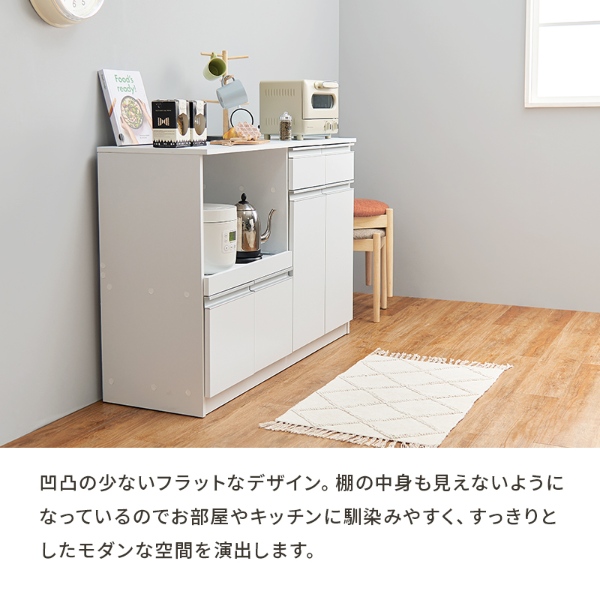 広々とした天板は、レンジや炊飯器などのキッチン家電を十分に置けるスペースを提供し、料理の効率を大幅に向上させます。