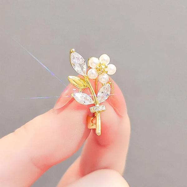 女性用の小さなクリスタルパールブローチ,ミニ気質リーフフラワーブローチ,滑り止めバックルピン,スーツジュエリー,新しい,2024