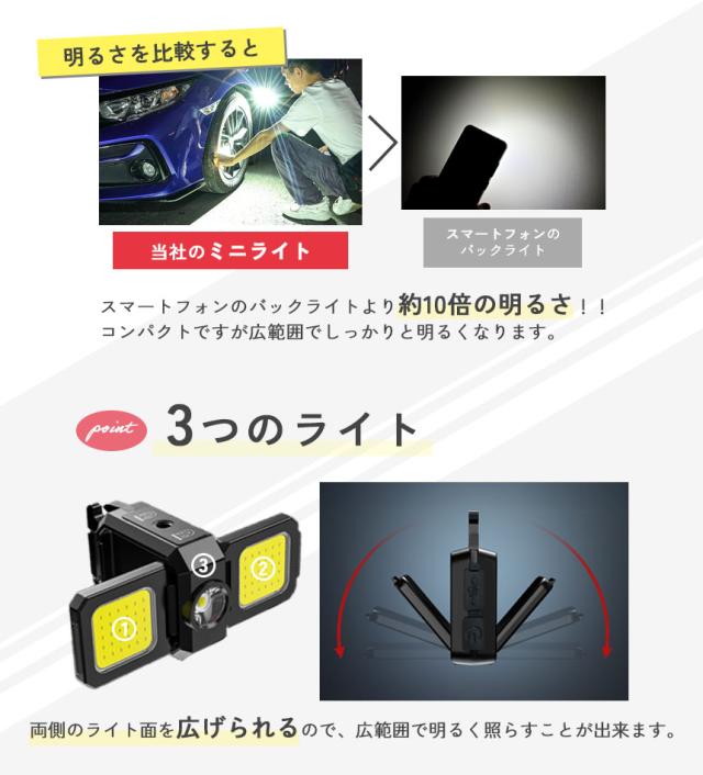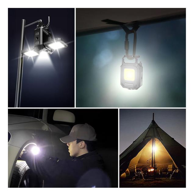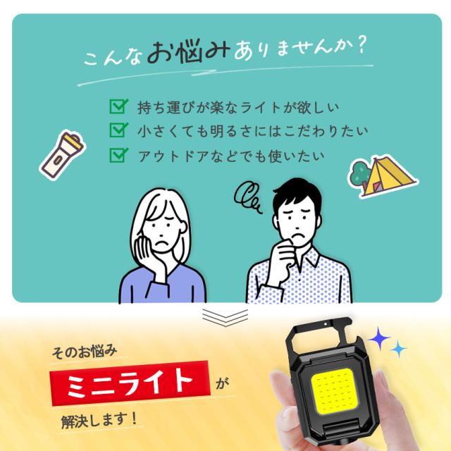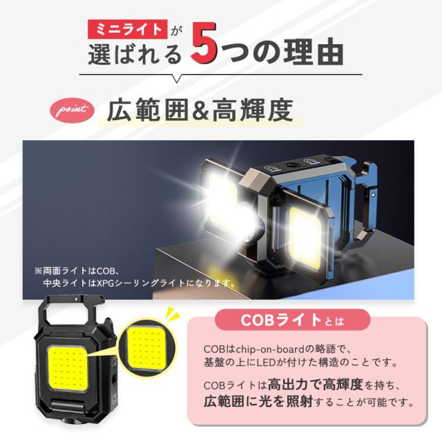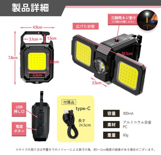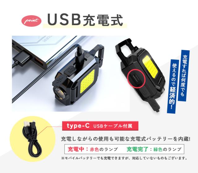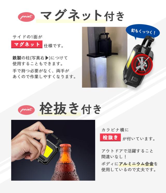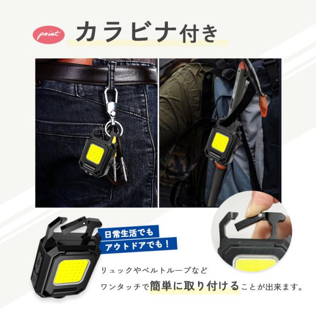 COBライト カラビナライト マグネット 小型 作業灯 ライト ミニライト 緊急照明用 カメラ用穴 マルチライト ミニ投光器 Type-C充電式 5つ点灯モード 高輝度 栓抜き 磁石付き アウトドア ミニ キーホルダー ランタン 小型ライト COB