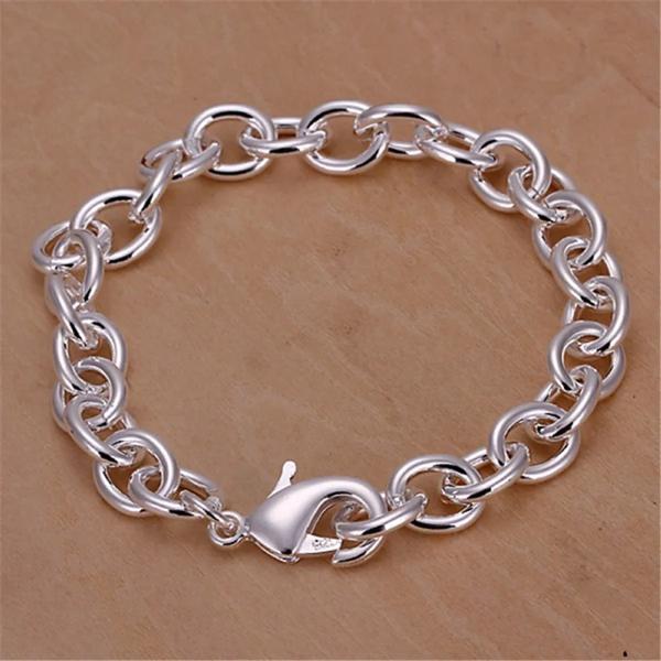 女性と男性のための925スターリングシルバーの絶妙なチェーンブレスレット,シンプルなモデル,ジュエリー
