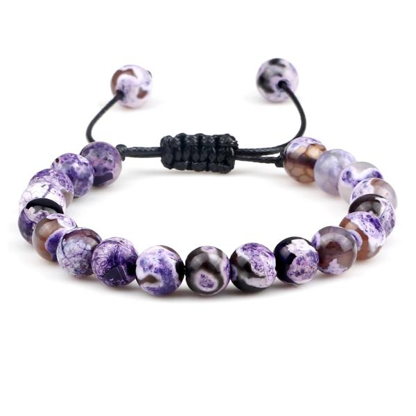 タイガーアイビーズブレスレット,8mm,調整可能な編みこみロープ,天然溶岩石,男性と女性のためのバランスの取れた癒しのヨガブレスレット