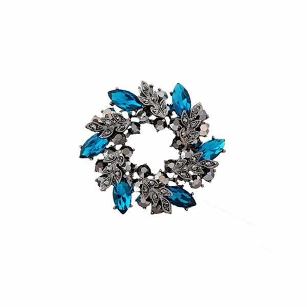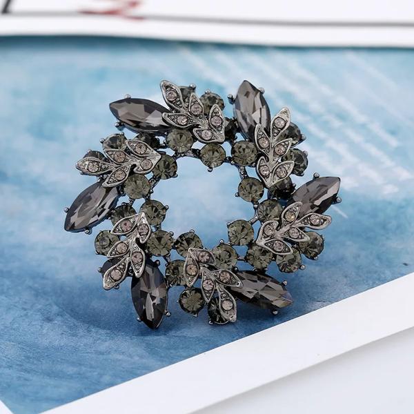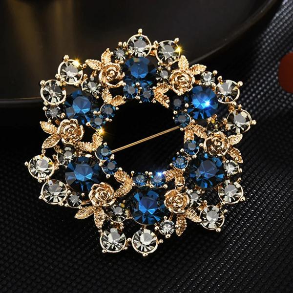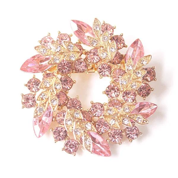 ハイエンド絶妙な気質の花輪カラーラインストーンブローチ中空象眼細工ジルコンブローチ