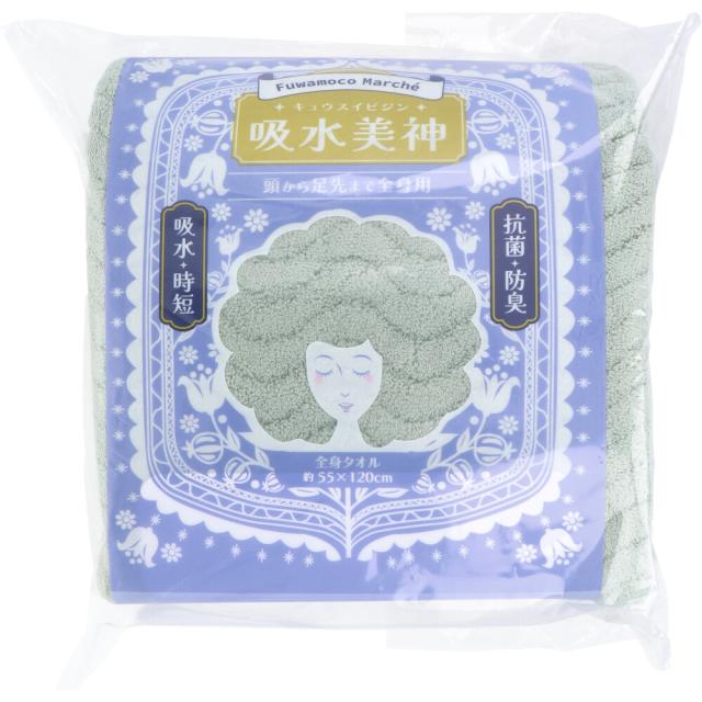 フワモコマルシェ 吸水美神 キュウスイビジン 全身タオル 約55×120cm グリーン 1枚入