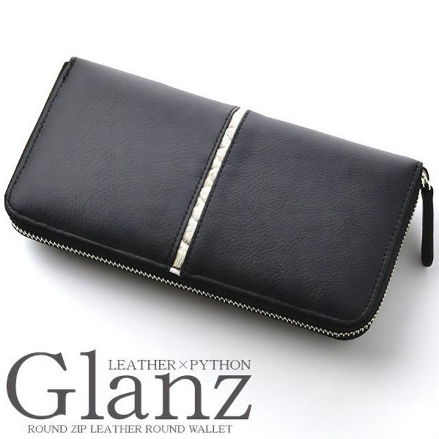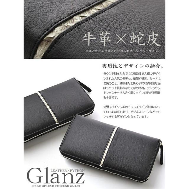 Glanz ラウンドファスナー 長財布 メンズ ラウンドウォレット 牛革 蛇革 小銭入れ コインケース