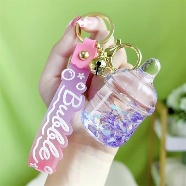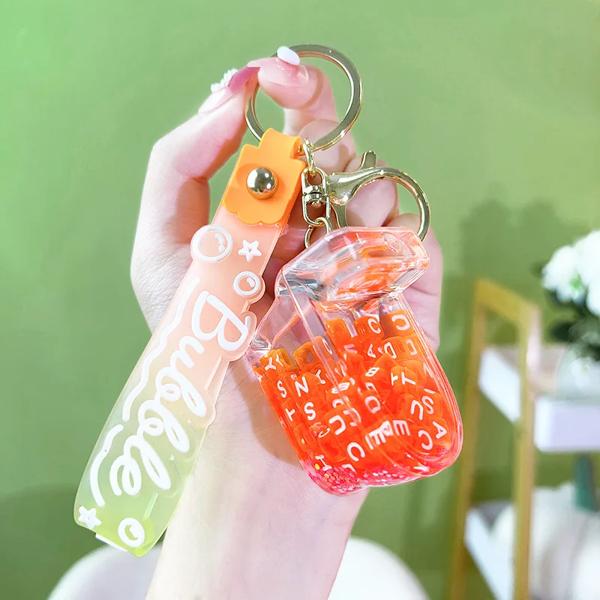 液体流砂ペンダント付きキーホルダー、暗闇で光る、アクリル、宇宙飛行士、ユニコーン、繊細、繊細