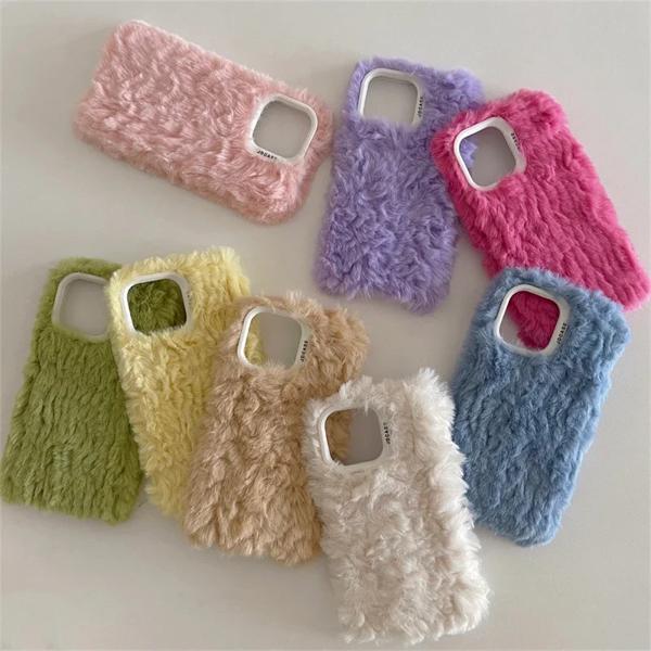 オートバイの電話ケース,ふわふわのシェル,キャンディーカラー,暖かいぬいぐるみ,かわいい女の子,iphone 15, 14, 13, 12 pro max,11,冬