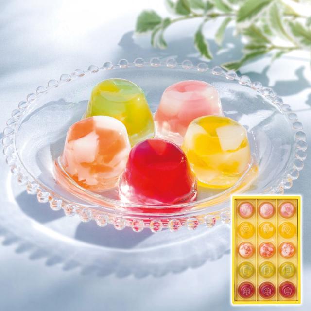 1つのゼリーに2つの果実の味わい。 キラキラ輝く、見た目もかわいいプチデザート。 現品サイズ・内容:ピーチ&グレープフルーツ味・アップル&パイン味・マンゴー&ライチ味・レモン&ライム味・カシス&ストロベリー味各3個・各52g 製造生産地:日本製 賞味期間:製造日より常温約180日 アレルゲン:乳成分・オレンジ・大豆・もも・りんご 重量:1050g |