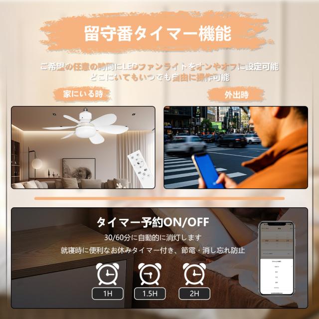 - メモリー機能では、あなたが好きな設定を保存しておくことができます。タイマー機能を利用すると、LEDファンライトを任意の時間に自動的にオンやオフに設定できます。出かける前に部屋を暖めたり、寝る前に照明を消したりするために便利です。 遠隔制御機能により、どこにいてもスマホからLEDファンライトを操作できます。