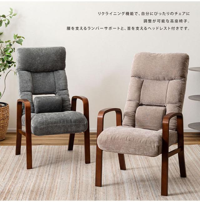 腰楽高座椅子 LSS-37 東谷 高座椅子 座椅子 ハイバック 背部 7段階リクライニング 頭・腰部 14段階リクライニング ヘッドレスト ランバーサポート シンプル 折りたたみ ゆったり ベージュ(代引