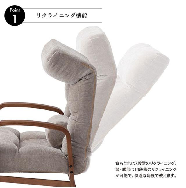 ●リクライニング機能で、自分にぴったりのチェアに調整が可能な高座椅子。