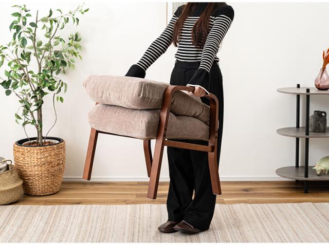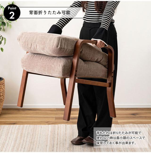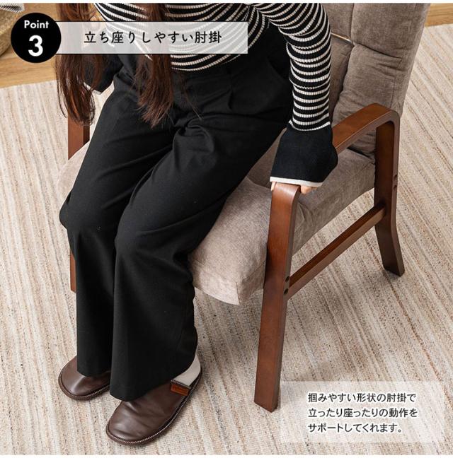 ●立ち上がりやすい肘掛の形状や持ち運びやすさなど、使う人に寄り添った設計の高座椅子。