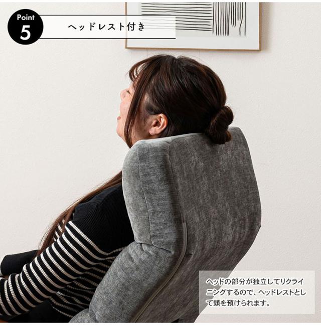 ●ヘッド部分が独立してリクライニングするので、ヘッドレストとして頭を預けてリラックス。