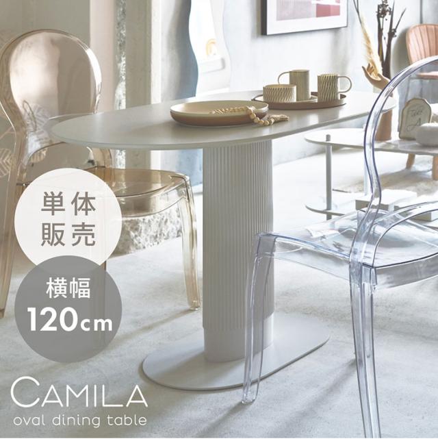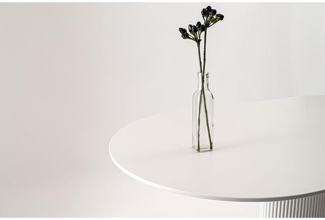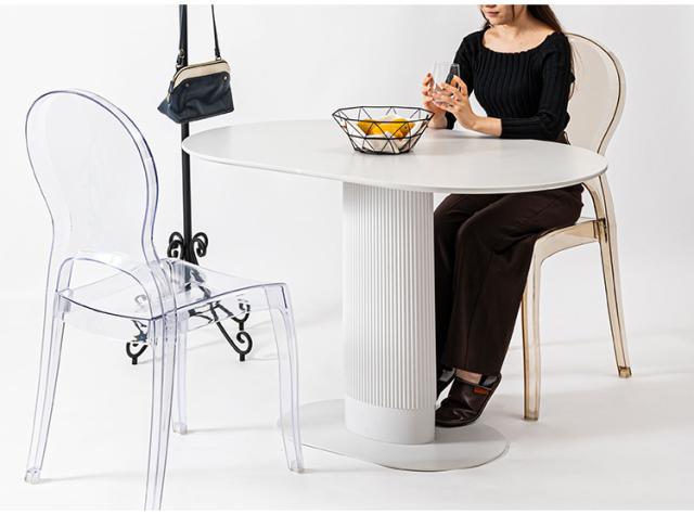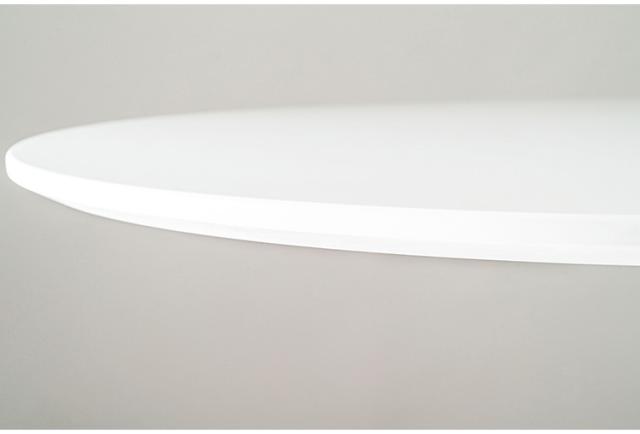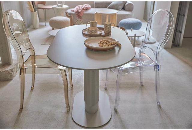 ●角のない丸みを帯びたフォルトと優しいホワイトカラーが柔らかい印象を与えるダイニングテーブル。