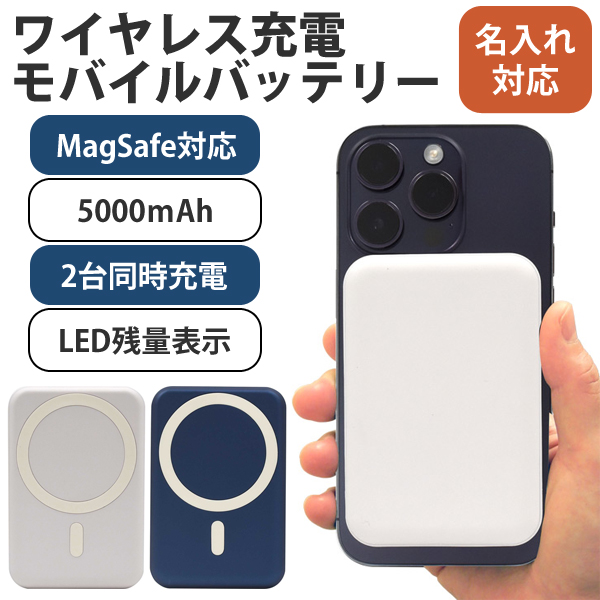 MagSafe対応 ワイヤレス モバイルバッテリー 5000mAh 名入れ対応 PSマーク 充電器 コンパクト 軽量 マグセーフ マグネット 最大出力15w Type-C ワイヤレス充電器 送料無料 即納