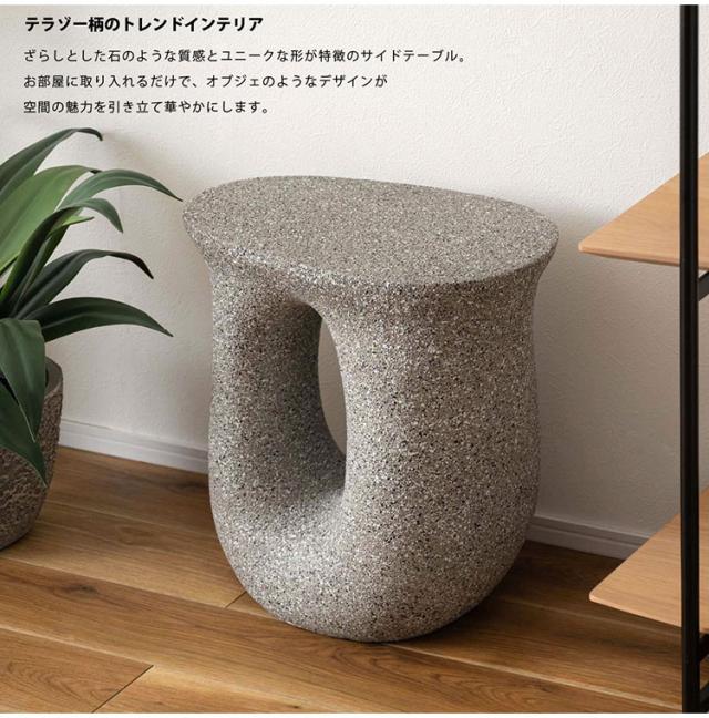 サイドテーブル AST-62 東谷 サイドテーブル テラゾー柄 おしゃれ オブジェ ナイトテーブル ソファサイド グレー モダン ベッドサイド ミニテーブル ストーン 大理石調 カーブ 曲線 石 灰色 マ