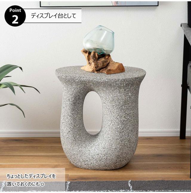 ●ざらりとした石のような質感とユニークな形が特徴のサイドテーブル。