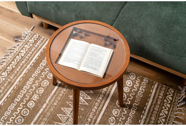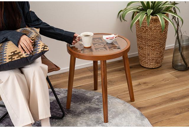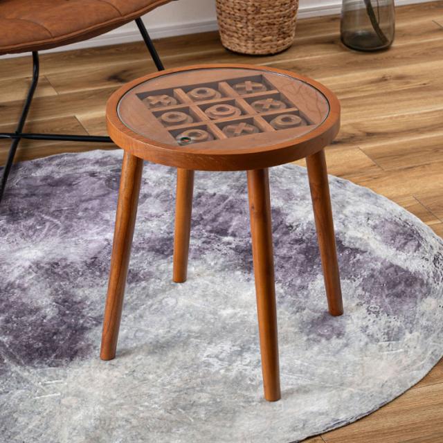 ボードゲームテーブル GT-780 東谷 サイドテーブル 丸 ラウンド 丸型 木製 高さ50cm 円形 ソファ ベッド横 ガラス リビング 天然木 ナチュラル ナイトテーブル 遊べる ゲーム 三目並べ(代引不可)