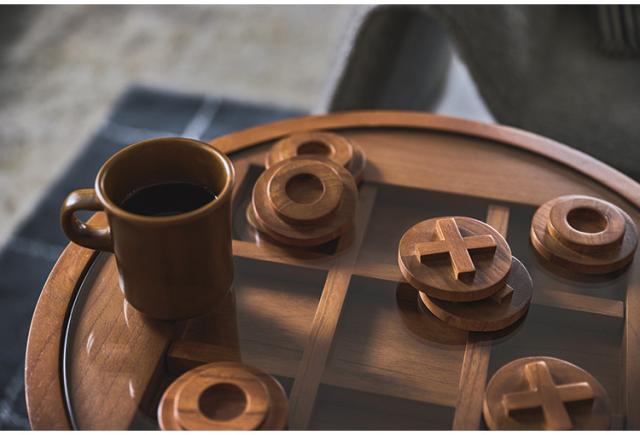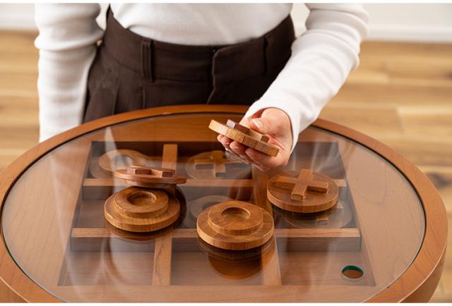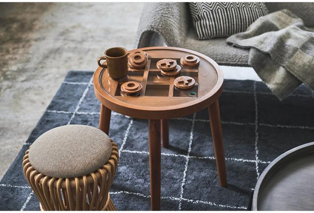 〇×ゲームのデザインを施したサイドテーブル。