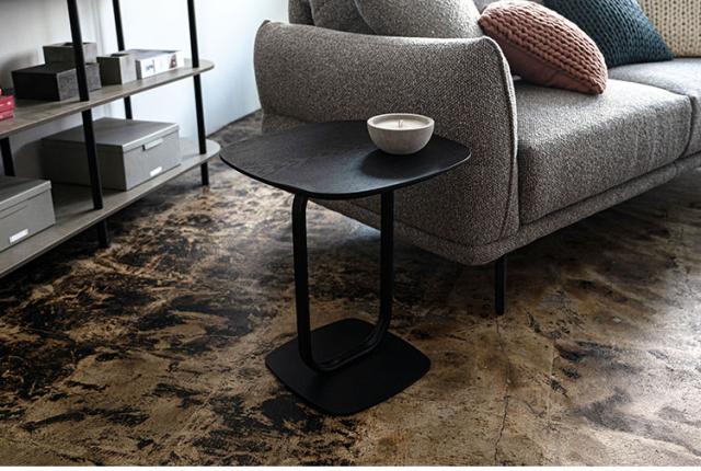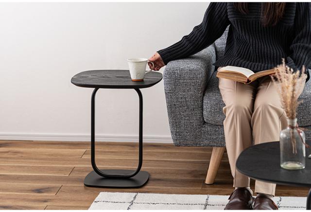 脚の抜け感が美しいテーブル 落ち着いた雰囲気とスタイリッシュさを兼ね備えた、サイドテーブル。デザイン性の高い脚が、モダンでセンスの良い空間を演出します。