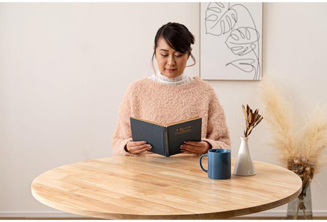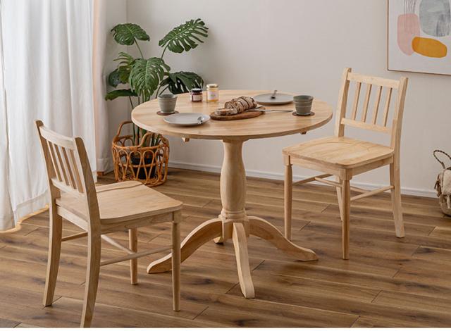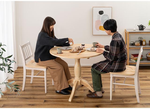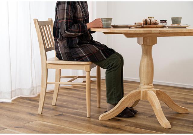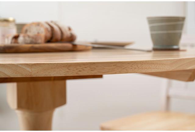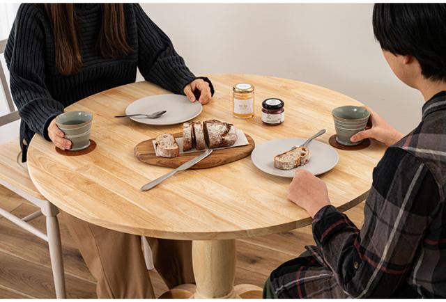 個性的な木目や、素材感を活かしたクリアな仕上げは、豊かな表情を生みやさしい曲線と、カフェテーブルのような一本脚が特徴的なダイニングテーブルは、インテリア性が高く、品のある空間を演出します。