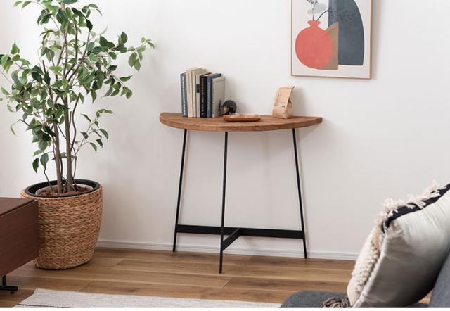 古材を使用した、天然素材の風合いを感じられるコンソール。