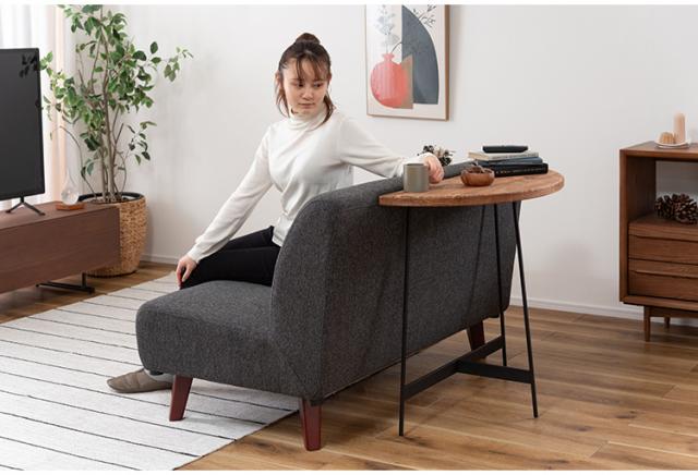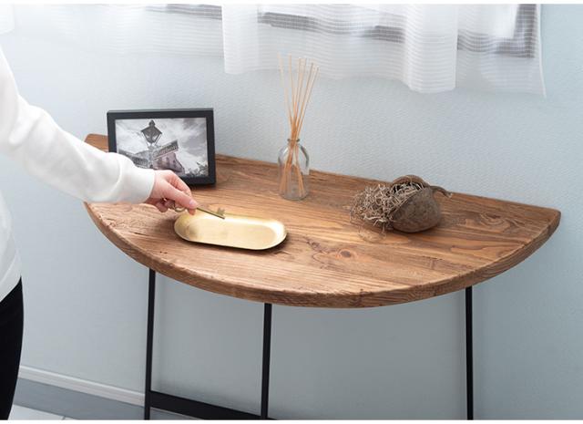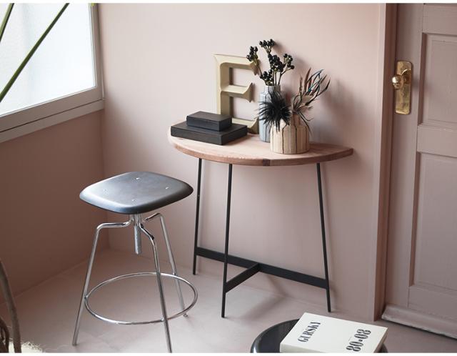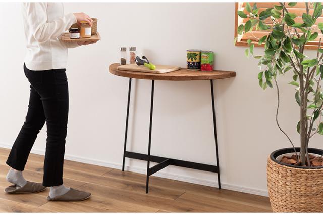 コンソール WE-8 東谷 コンソールテーブル テーブル 木製 幅83cm コンソール 天然木 無垢 パイン 古材 半円 三日月型 バックカウンター ソファ裏 ソファー 後ろ アイアン 脚 ブラック 黒(代引不