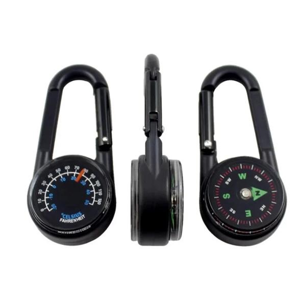 1 PC 屋外多機能ハイキング金属カラビナコンパス温度計キーホルダー金属カラビナキーホルダー