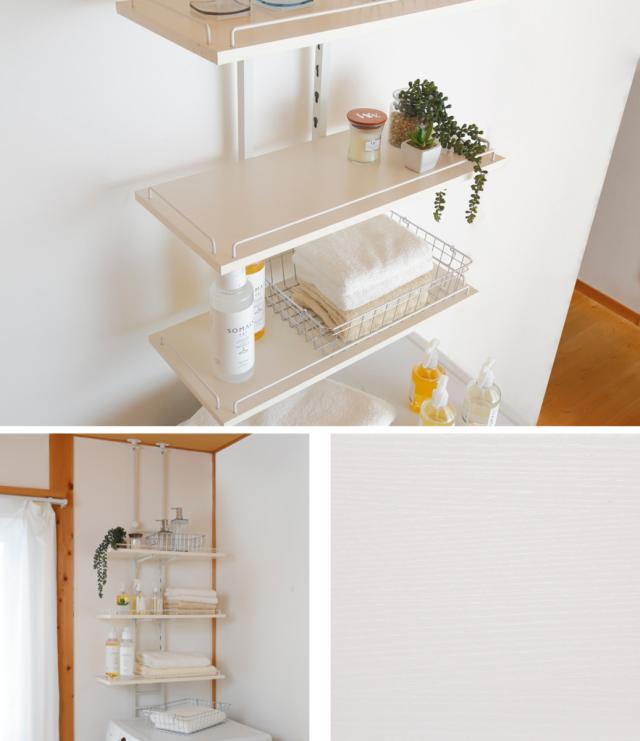 フレームや棚板、ワイヤーまで全て白で揃えた当店オリジナルカラーのホワイトが登場しました。洗濯機や壁紙の色とも馴染み、脱衣所やランドリーなどの限られたスペースに設置しても圧迫感がありません。