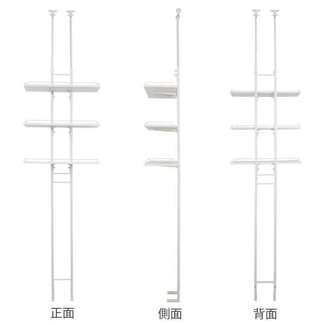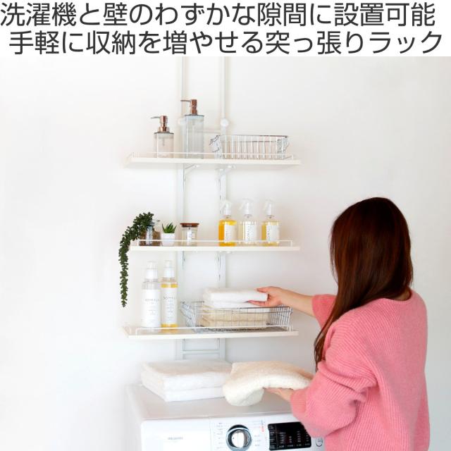 突っ張り ランドリーラック ホワイト 工具不要 棚板3枚 幅60cm 高さ200〜260cm ( ラック 収納 壁面収納 すき間3段 棚 ランドリー 突っ張り棚 洗濯機上 洗濯機横スリム 洗面所 )