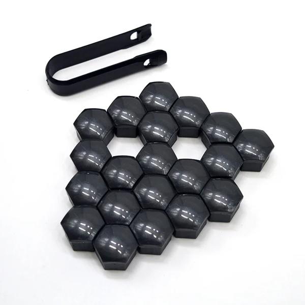 クロームプラスチック製カーホイールナットカバー、ボルトキャップクリップ、自動取り付けツール、プラスチックボルト保護、外アクセサリー、バッグあたり20個