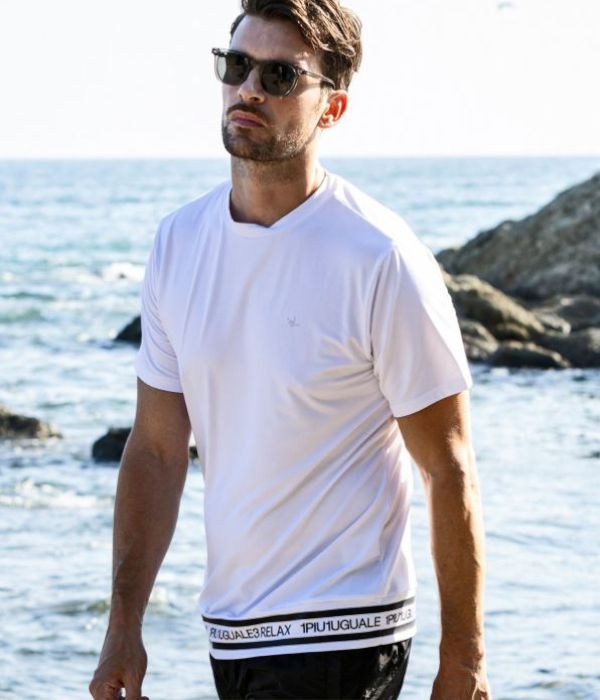 1PIU1UGUALE3 RELAXからリゾートにも最適な海辺での日焼けや擦り傷などから肌を守ってくれるラッシュガードの登場です。