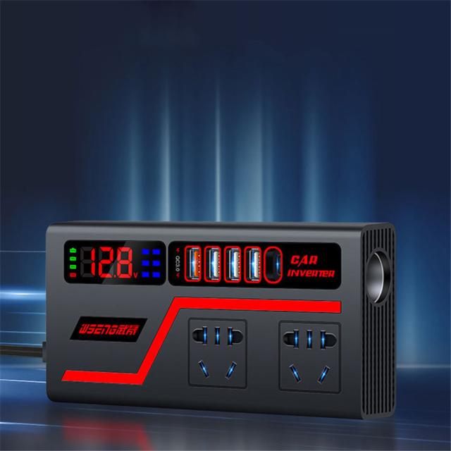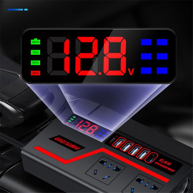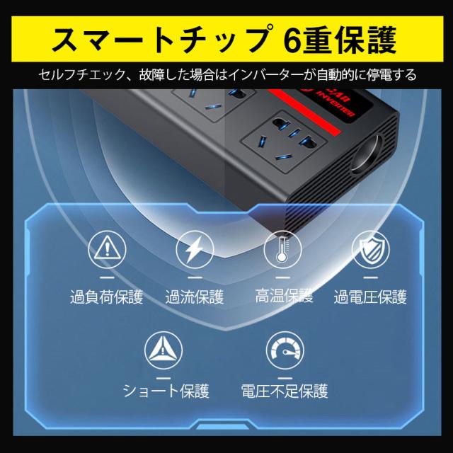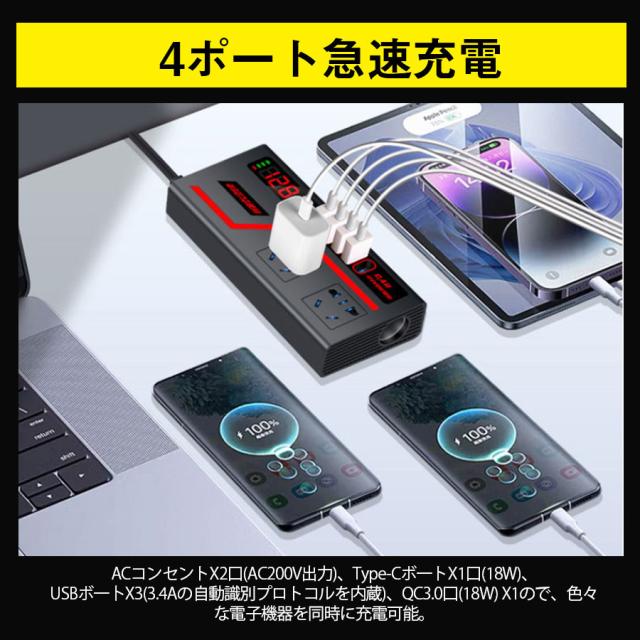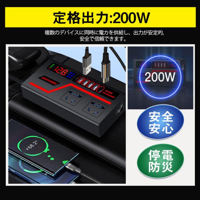 \即納/カーインバーター 車載インバーター インバーター 200W 車載充電器 ACコンセント2口 USB 4ポート 充電 12V車用 地
