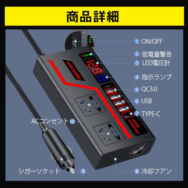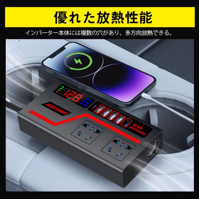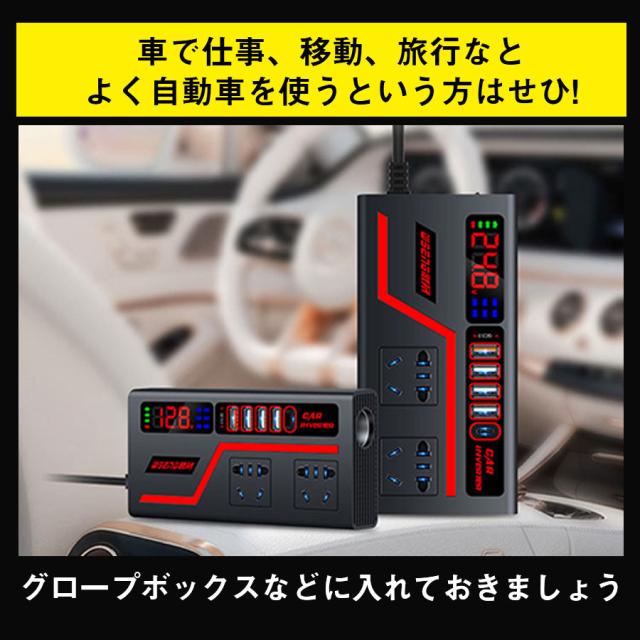 \即納/カーインバーター 車載インバーター インバーター 200W 車載充電器 ACコンセント2口 USB 4ポート 充電 12V車用 地