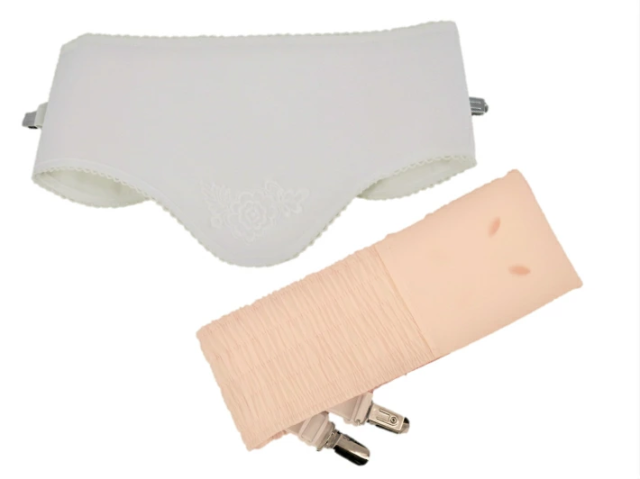 【色】ファンデーション:白/ニューサッシュクリップ付き:ピンク【品質表示】ファンデーション:本体部表生地/綿100% 本体部芯/ウレタンフォーム 裏生地/綿100% 紐部/マジックテープ付きゴム紐,ニューサッシュクリップ付き:生地/ナイロン100% 芯素材/PVCレザー芯・不織布