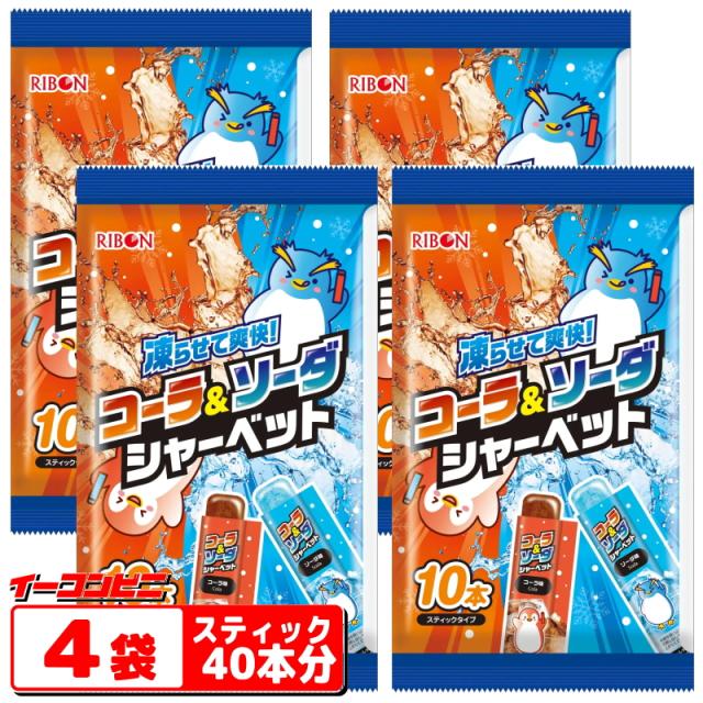 リボン コーラ&ソーダシャーベット スティック10本入 x 4袋 (スティック40本分)コーラ味・ソーダ味 熱中症対策 常温保存可能