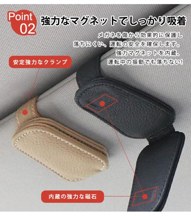 サングラスホルダー 車 メガネホルダー 2点セット メガネクリップ メガネスタンド 磁石 フック マグネット シンプル 取り付け簡単 省スペース 小物収納