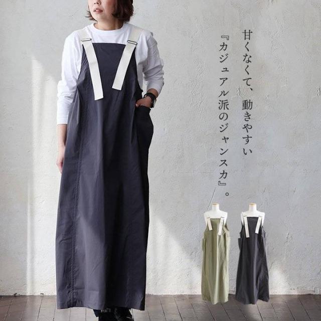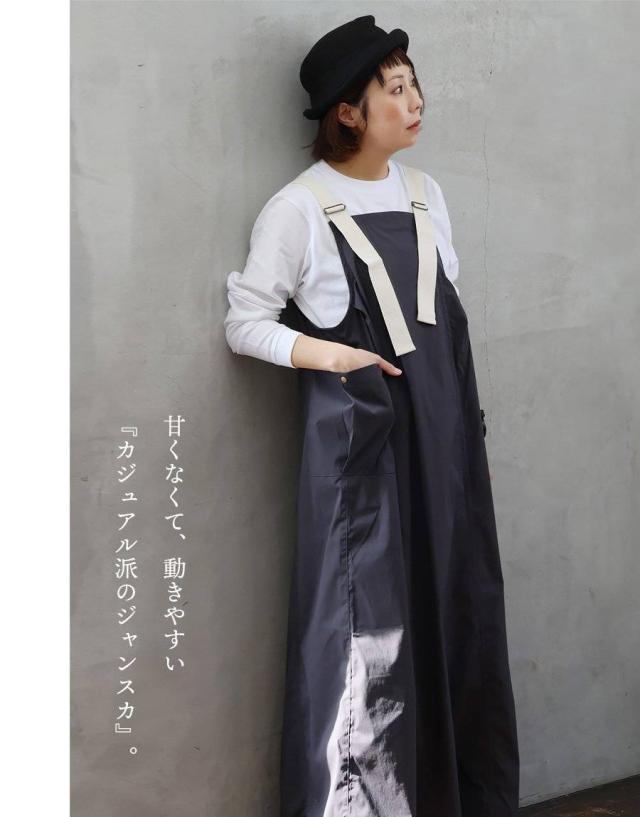 ジャンパースカート ジャンスカ スカート マキシ丈 レディース 無地 太ストラップ ナイロン ストレッチ 動きやす 大きいサイズ 体型カバー カジュアル 春 パティ