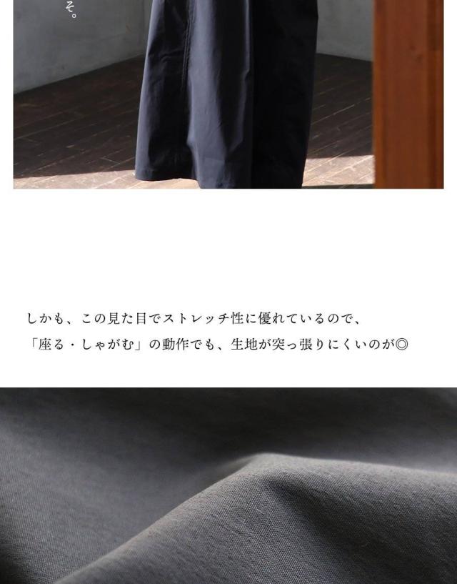 ・薄手ながらもハリのある生地なうえに、裾にかけて真っすぐ落ち感のあるマキシ丈は身体のラインを拾いません。