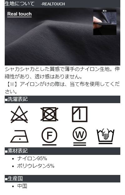 ・生地はシャカシャカとしたやや光沢のあるナイロンストレッチ地。
