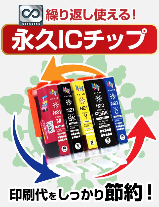 XKI-N21+N20 / 5MP 大容量 5色セット【永久ICチップ付き】スターターセット キャノン Canon 互換インクカートリッジ エコロジー ゴミ削減 XKI N21 N20 5MP PIXUS XK100 XK110 XK120 XK130 XK140 XK500 XK510