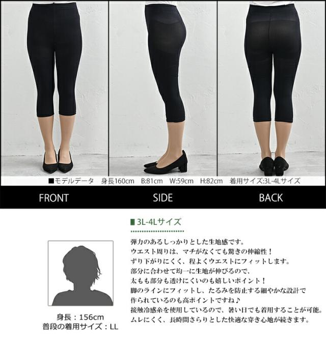 大きいサイズ レディース 7分丈 メール便対応 冷感レギンス 50デニール 接触冷感 日本製 レッグウェア インナー NSLW 3L-4L/5L-6L/7L-8L ゆったりサイズ ぽっちゃり女子 プラスサイズ