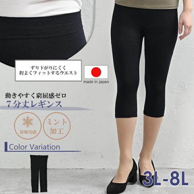 【メール便対応】ひんやり感続く快適な履き心地の7分丈冷感レギンス。 XXXXXXXL 2XL 3XL 4XL 5XL 6XL 7XL レッグウェア ゆったりサイズ ぽっちゃり女子 プラスサイズ 大きいサイズ レディース 7分丈レギンス スパッツ 50デニール相当 股上深め 黒スパッツ 黒レギンス 日本製 madeinJAPAN レッグウェア インナー ベーシック シンプル ウエストゴム 7分丈 8分丈 七分丈 八分丈 クロップド丈 接触冷感加工 ひんやり ミント加工 普段使い デイリー 美脚 春用 夏用 秋用 春物 夏物 秋物 春夏 夏用レギンス ストレッチ 伸縮 よく伸びる プラスサイズ 大人 カジュアル アクティブ スポーティー きれいめ かわいい 着こなし おしゃれ 定番 春コーデ 夏コーデ 秋コーデ 女性用 婦人用 ミセス 30代 40代 50代 2025 春新作 春 夏 秋 黒 3L 4L 5L 6L 7L 8L 15号 17号 19号 21号 23号 25号 ns-2866lg50cl07