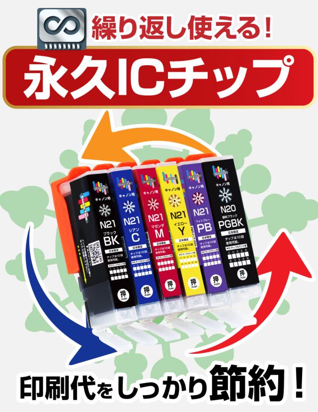 【永久ICチップ付き】XKI-N21+N20 / 6MP 大容量 6色セット スターターセット キャノン Canon 互換インクカートリッジ エコロジー ゴミ削減 XKI N21 N20 6MP N20PGBK N21BK N21C N21M N21Y N21PB PIXUS XK500 PIXUS XK510
