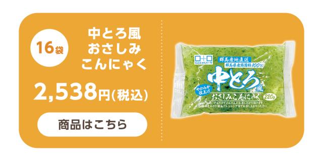 | トロッと優しい食感のうすぎりさしみゆばこんにゃくです。水洗いするだけで簡単調理が可能。酢味噌をつけてお刺身蒟蒻として、ドレッシングなどをかけて蒟蒻サラダとしてもお楽しみいただけます。 |