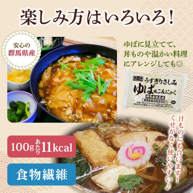 うすぎり/ゆば/ゆば風/湯葉/刺身こんにゃく/さしみこんにゃく/ダイエット/ダイエット食品/カロリーオフ/低カロリー/糖質オフ/糖質制限/低糖質/満腹感/ポイント消化/こんにゃく/蒟蒻/群馬県産/ファスティング/プチ断食/断食