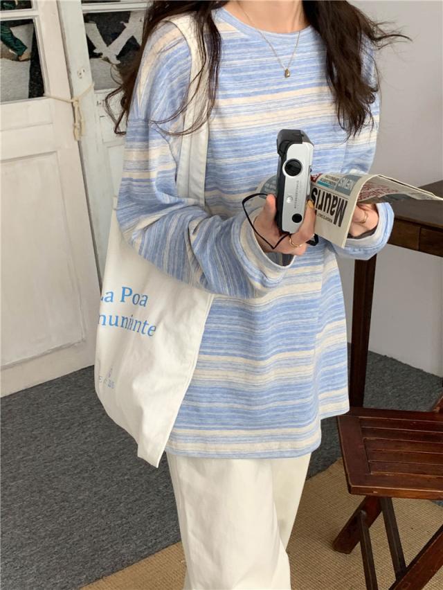 リラックス 長袖 レディース トップス カットソー 長袖カットソー 長袖Tシャツ ボーダー デザイン袖 ロンT パーカー