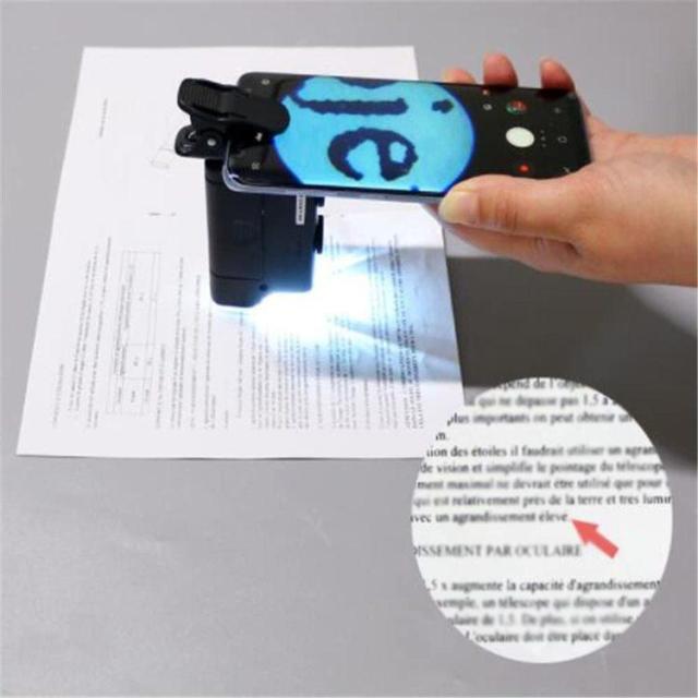 携帯電話クリップ顕微鏡は、フリップダウンスライドベースとスマートフォンスコーピングアダプタークリップを備えた強力な照明付きポケット顕微鏡です。